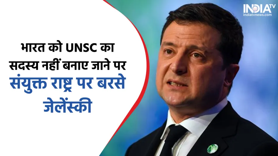 Zelensky furious at UNSC: संयुक्त राष्ट्र सुरक्षा परिषद ( UNSC) में भारत को अब तक स्थाई सदस्य नहीं बनाए जाने पर यूक्रेन के राष्ट्रपति व्लादिमिर जेलेंस्की ने संयुक्त राष्ट्र पर जमकर अपनी भड़ास निकाली है। उन्होंने सवाल किया कि ऐसा क्या कारण है कि भारत और यूक्रेन जैसे देश को अब तक यूएएनएससी का स्थाई सदस्य नहीं बनाया गया। जबकि भारत समेत यूक्रेन, ब्राजील, जर्मनी और जापान जैसे देश इसकी स्थाई सदस्यता के पूरे हकदार हैं। मगर अब तक स्थाई सदस्य नहीं बनाए जाने के कारण क्या हैं?... उन्होंने आगे कहा कि एक दिन ऐसा जरूर आएगा, जब यह मसला हल होगा।